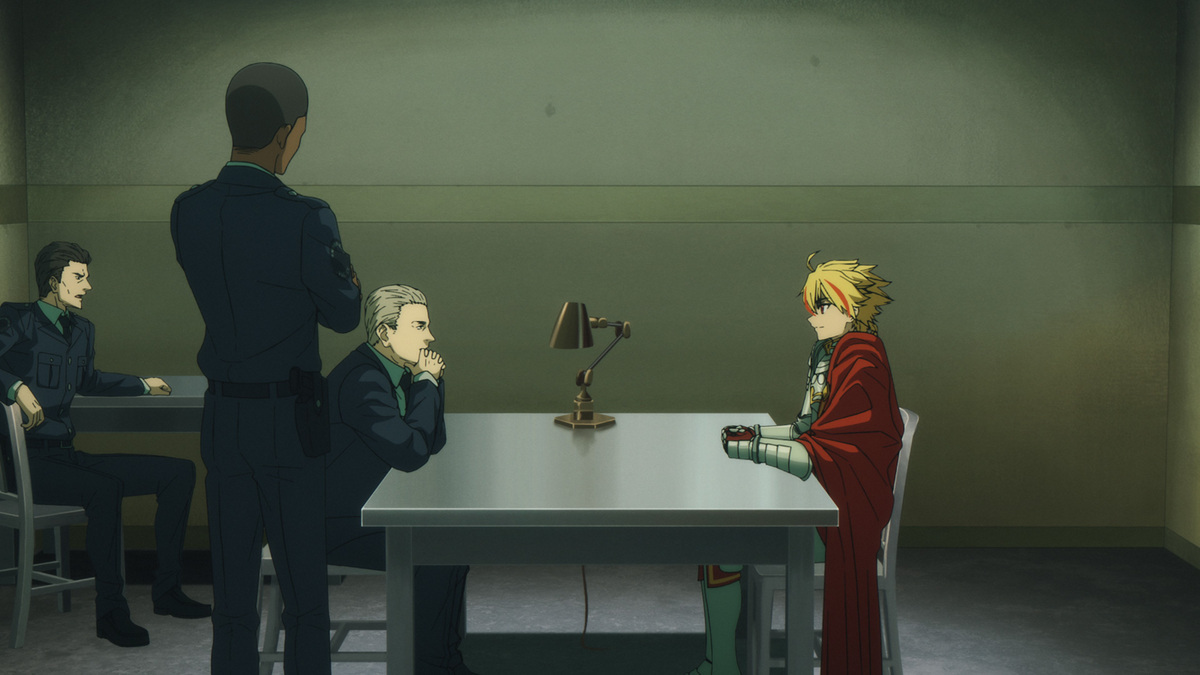 Saber and Ayaka seize the opportunity to flee from their cell amidst the chaos at the police station. However, a lone police officer stands in their way. In his hand lies a secret weapon to prevent their escape. He holds out his Noble Phantasm…a rice bowl! The officer then says to Saber, “You’re really going to leave here without eating a bowl of katsudon?" Facing this delicious temptation meant to ensnare escapees, Saber falters…